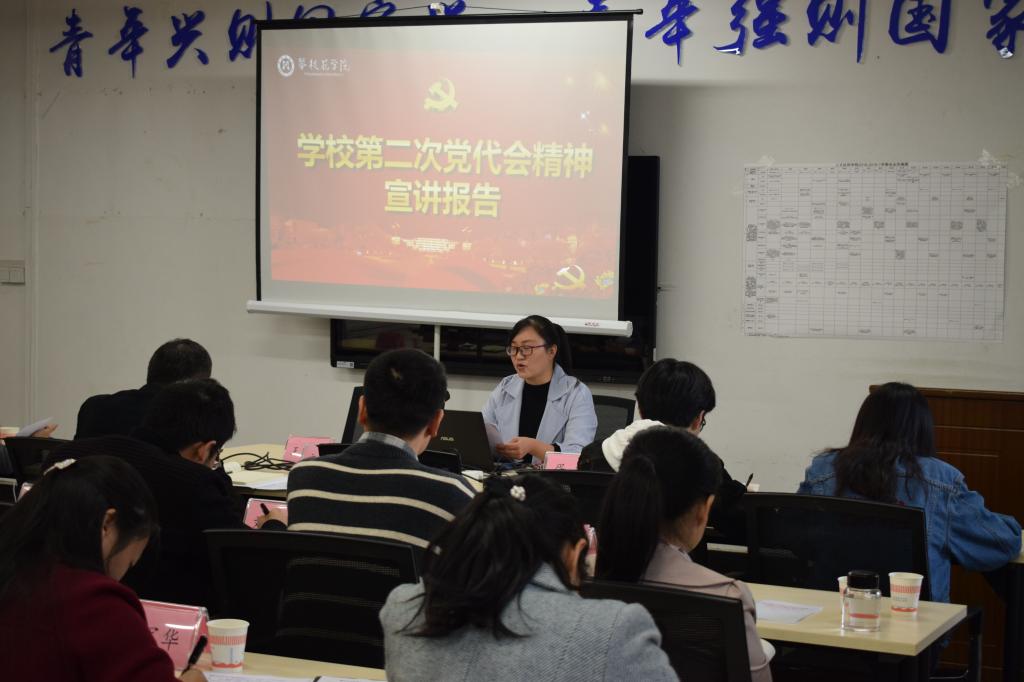 11月29日下午,我校党委宣讲团第二次党代会精神宣讲报告会在人文社科学院凌云楼三楼会议室举行。人文社科学院全体教职工、学生党员及入党积极分子近70人现场听取报告会宣讲内容。报告由学校党政办公室助理王春梅主讲。